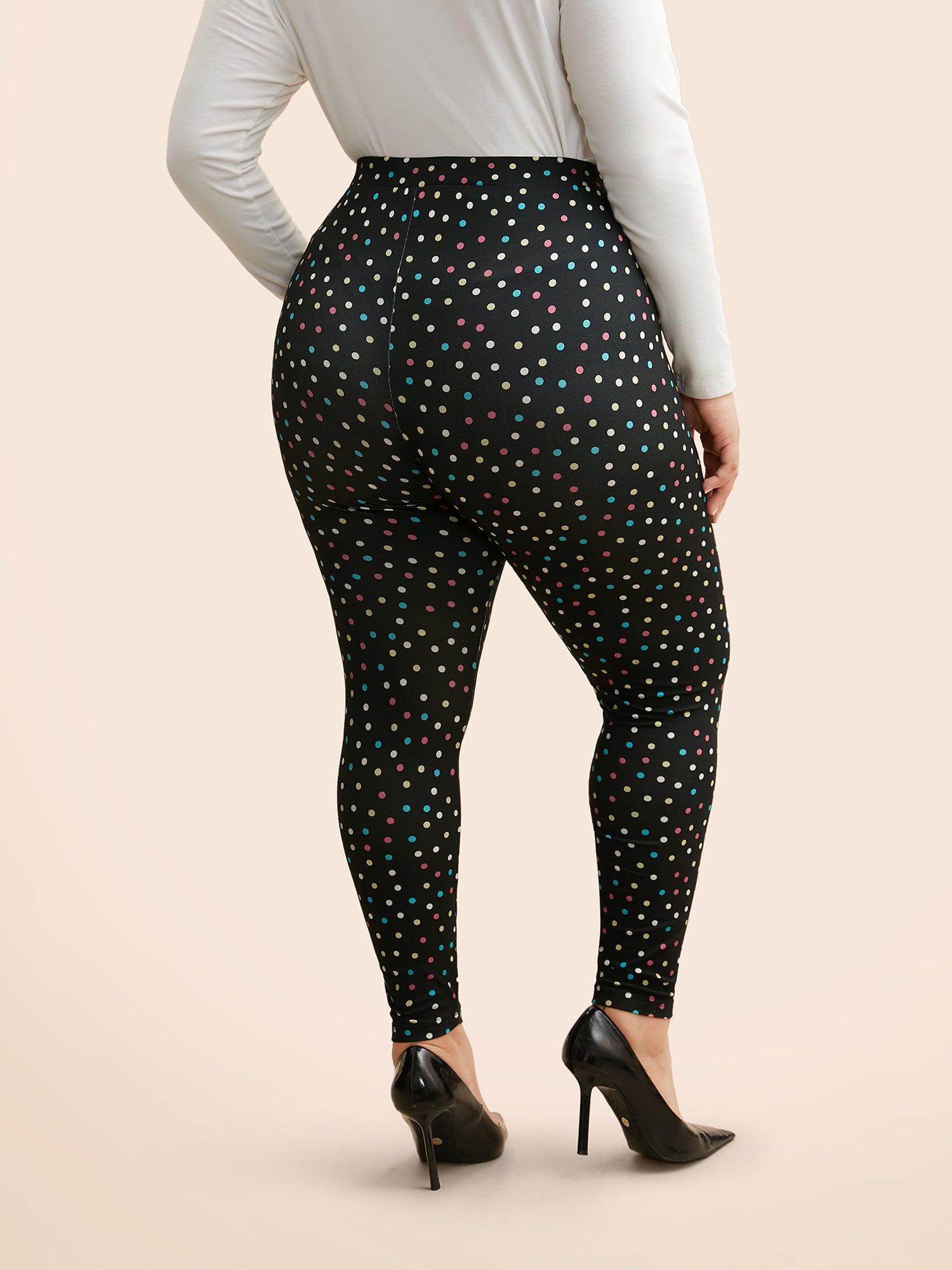 Color Polka Dot Mid Rise Skinny Leggings