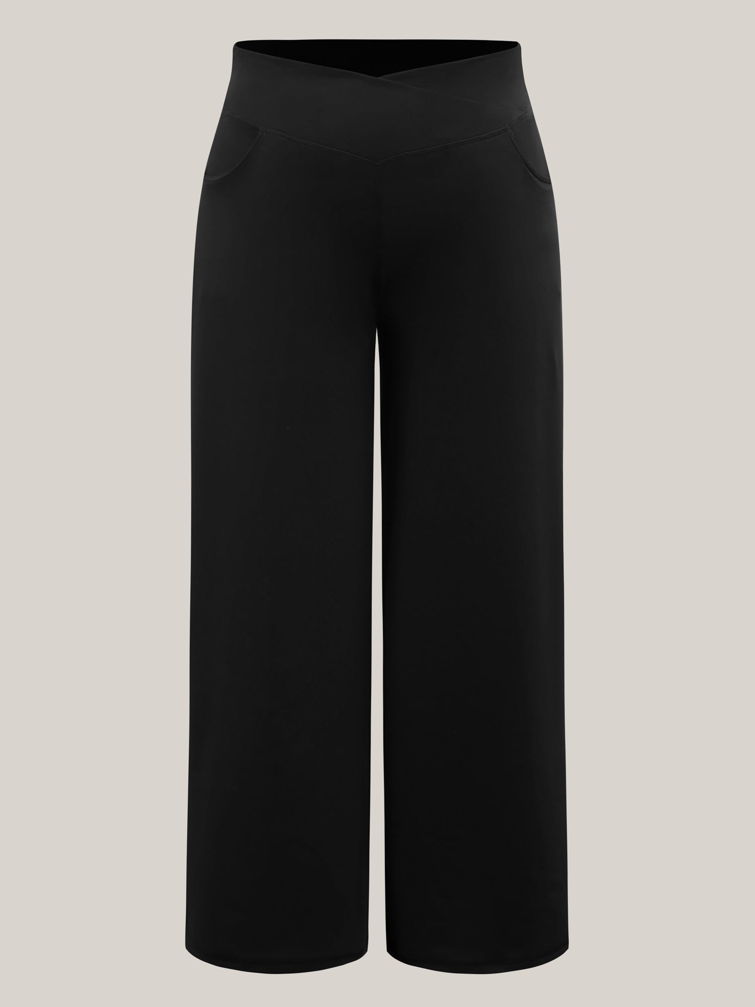 Crossover Waist Very Stretchy Wide-Leg Pants