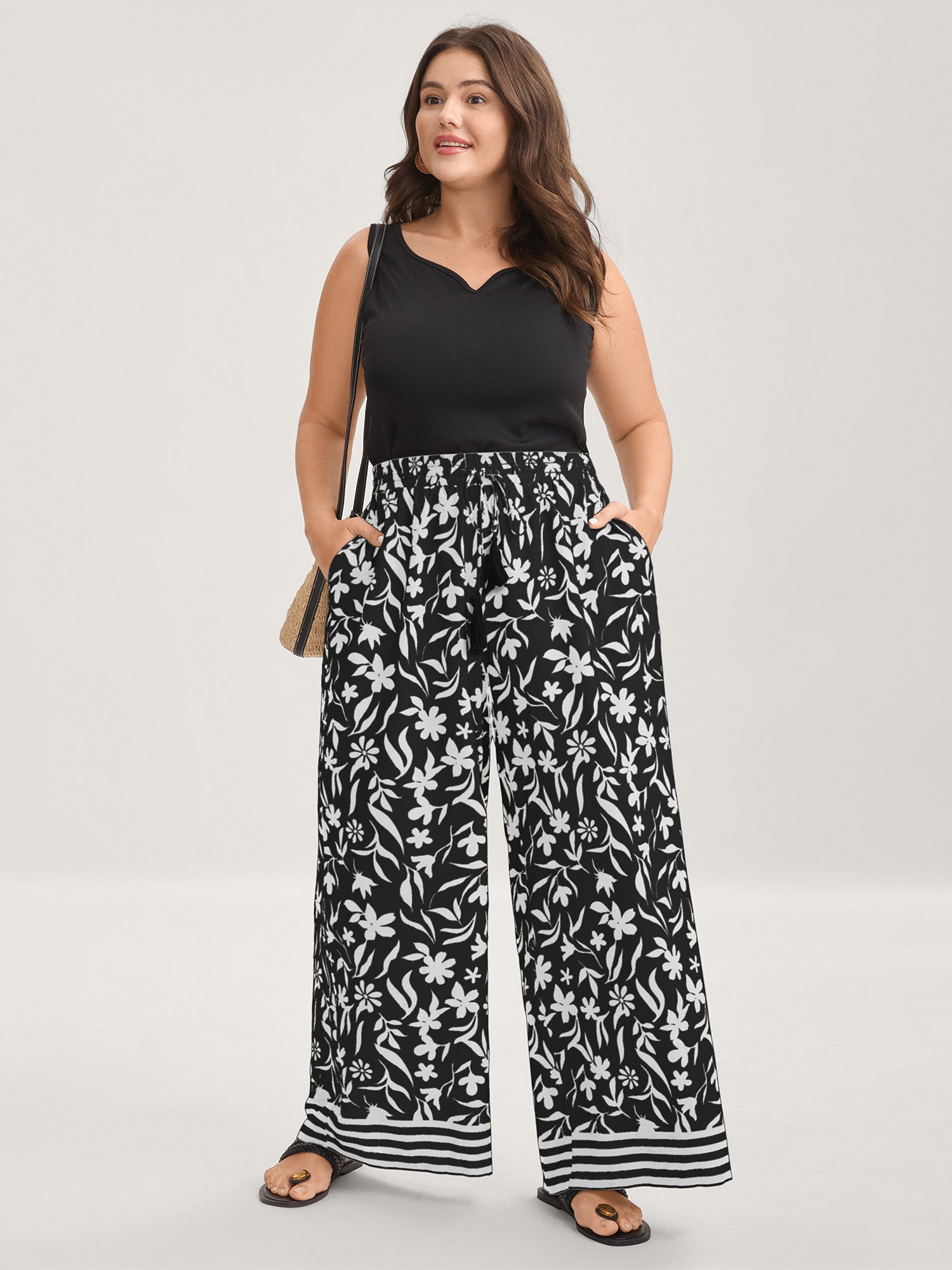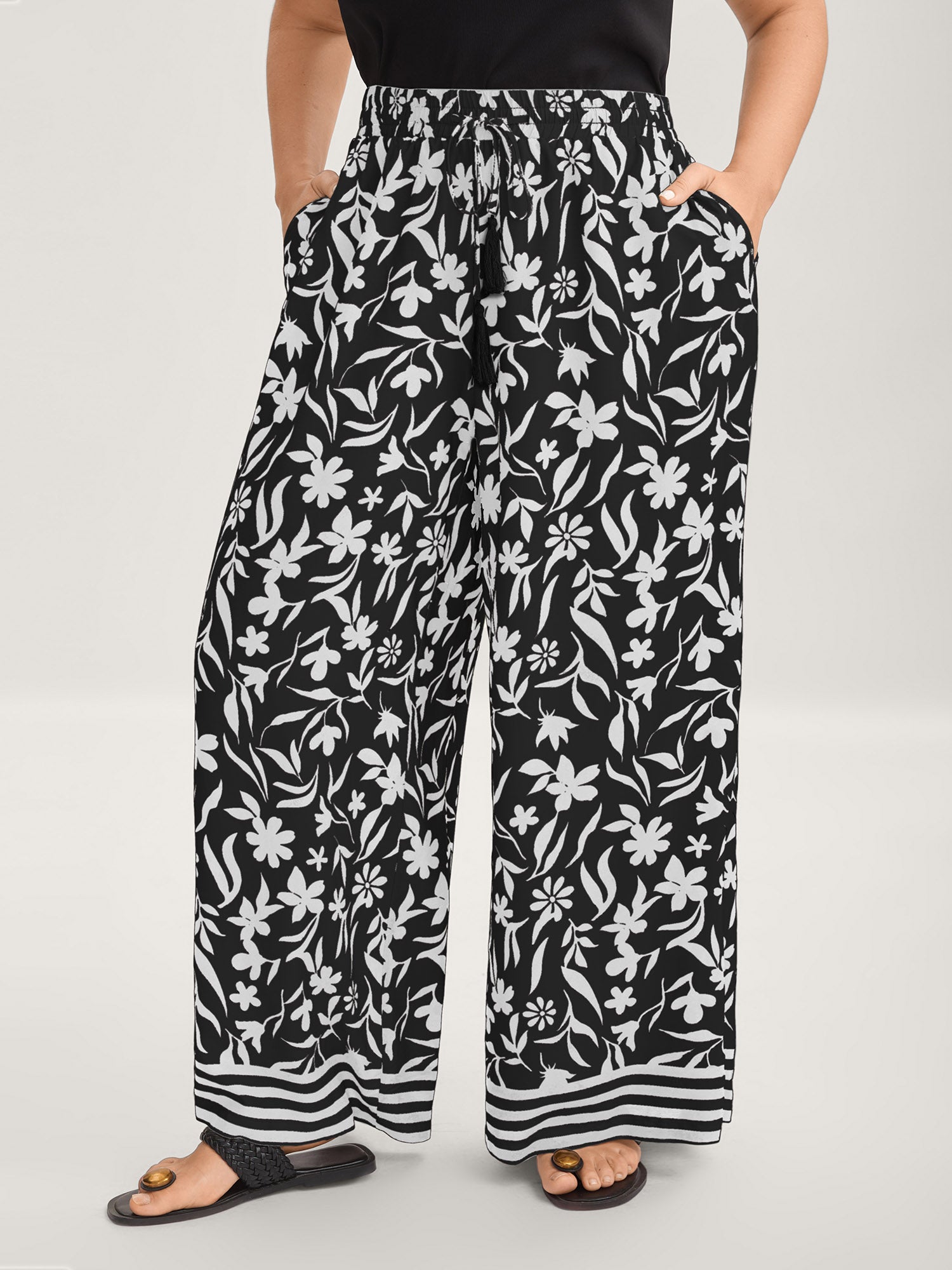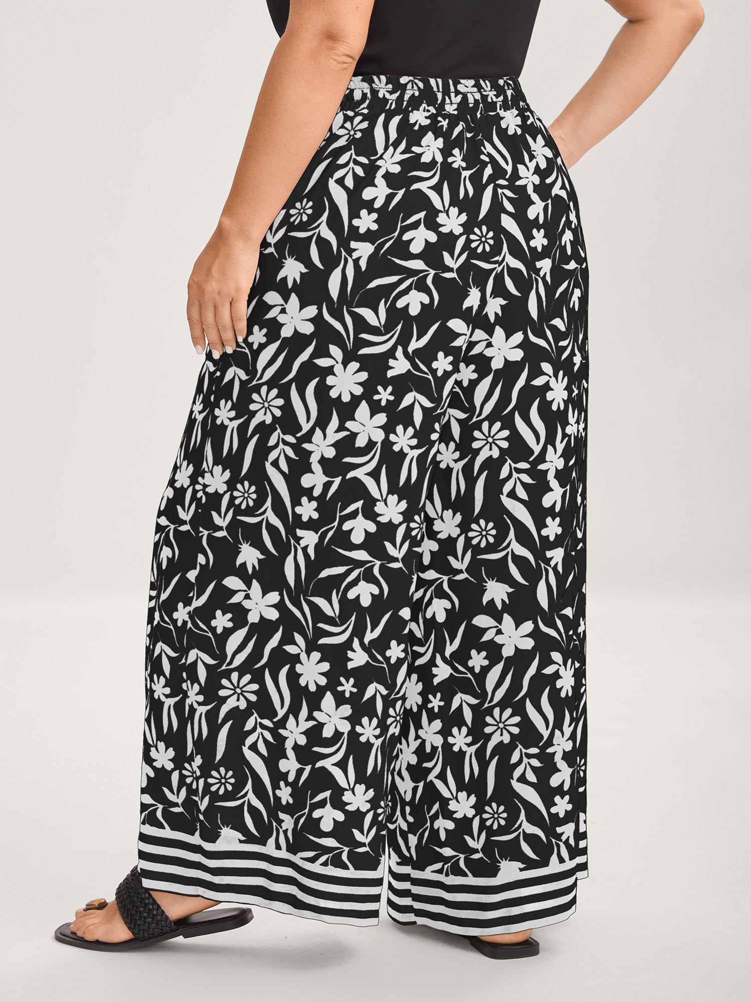 Floral Print Wide-Leg Contrast Pants