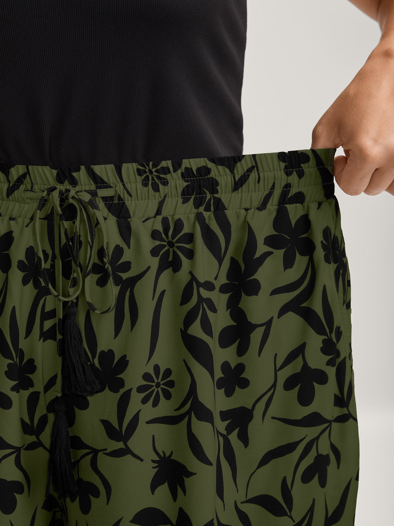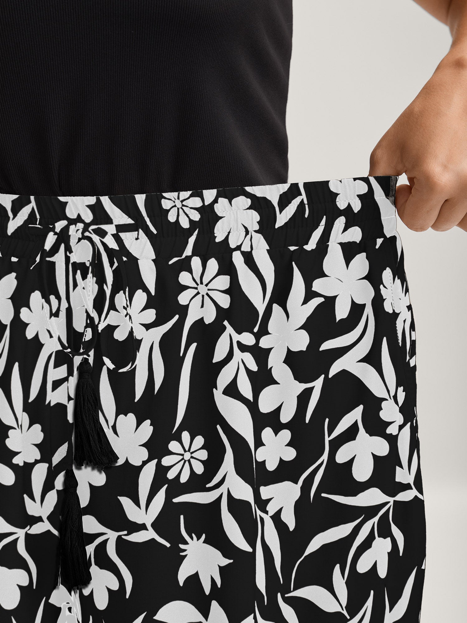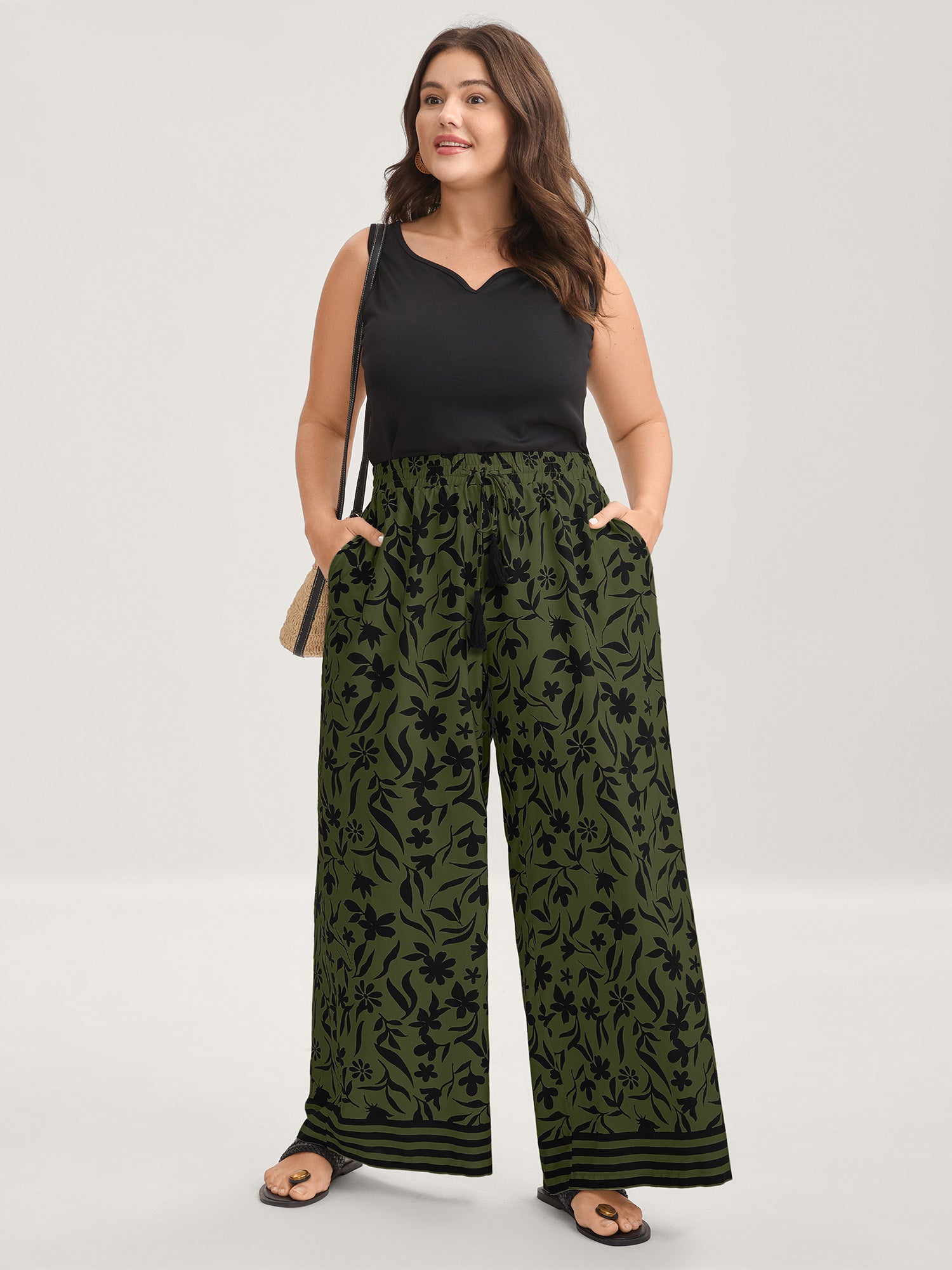 Floral Print Wide-Leg Contrast Pants