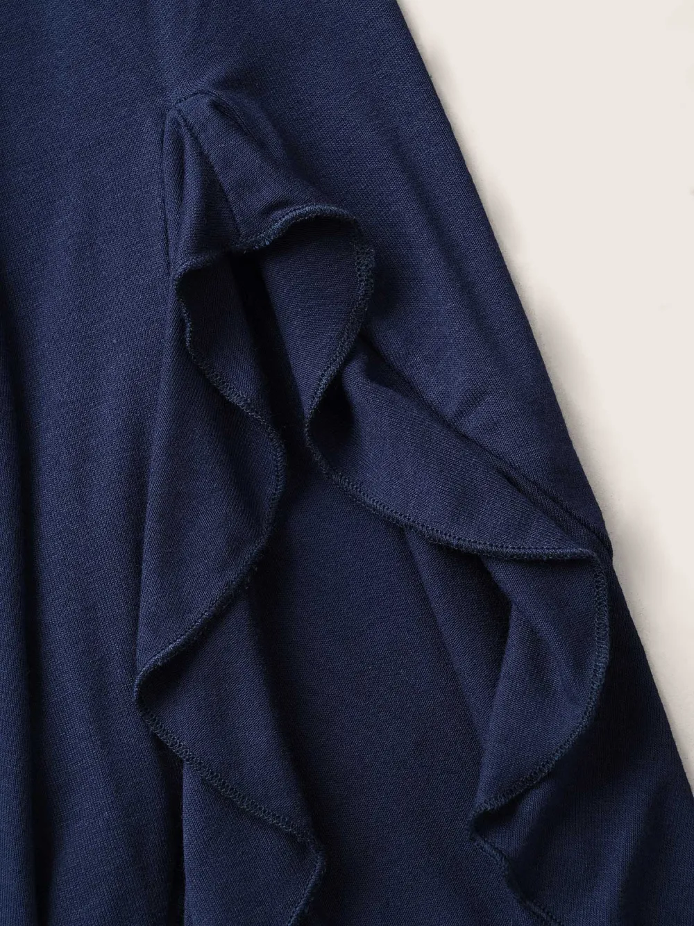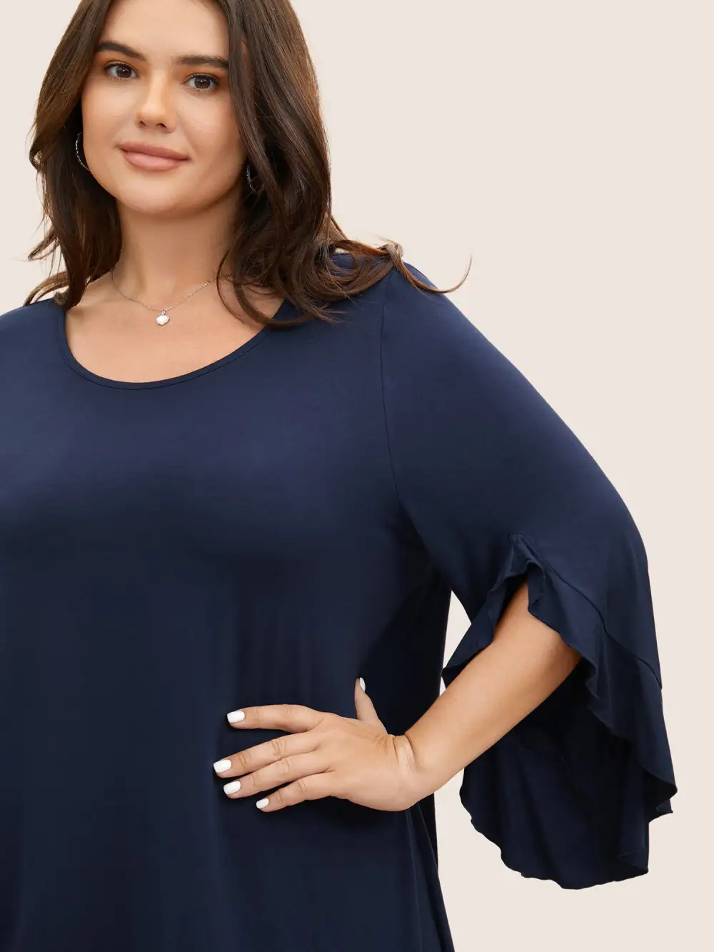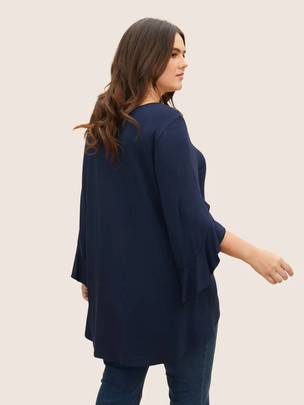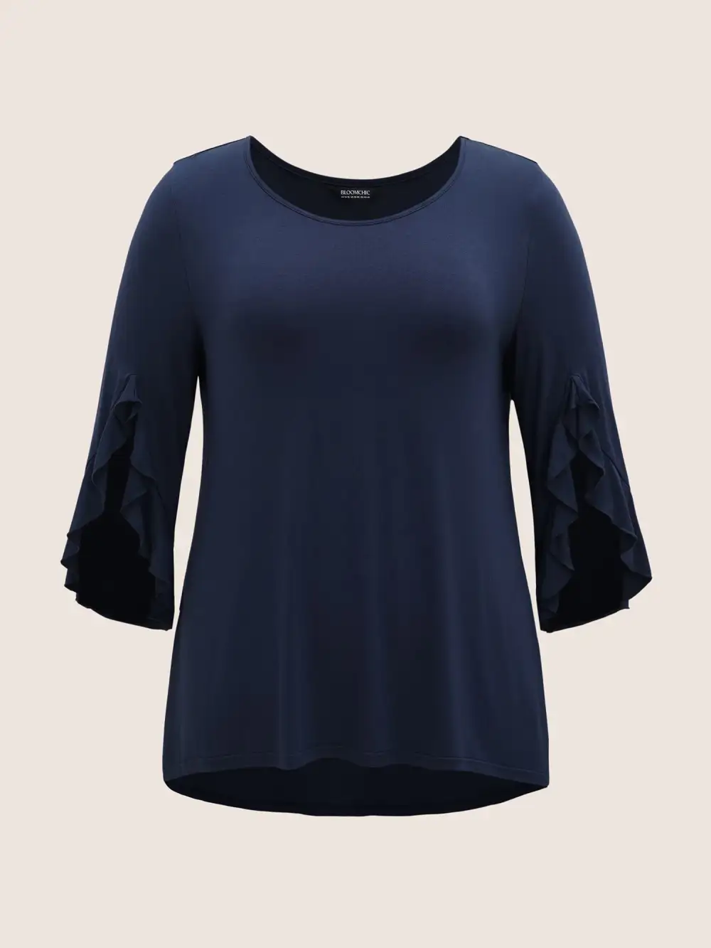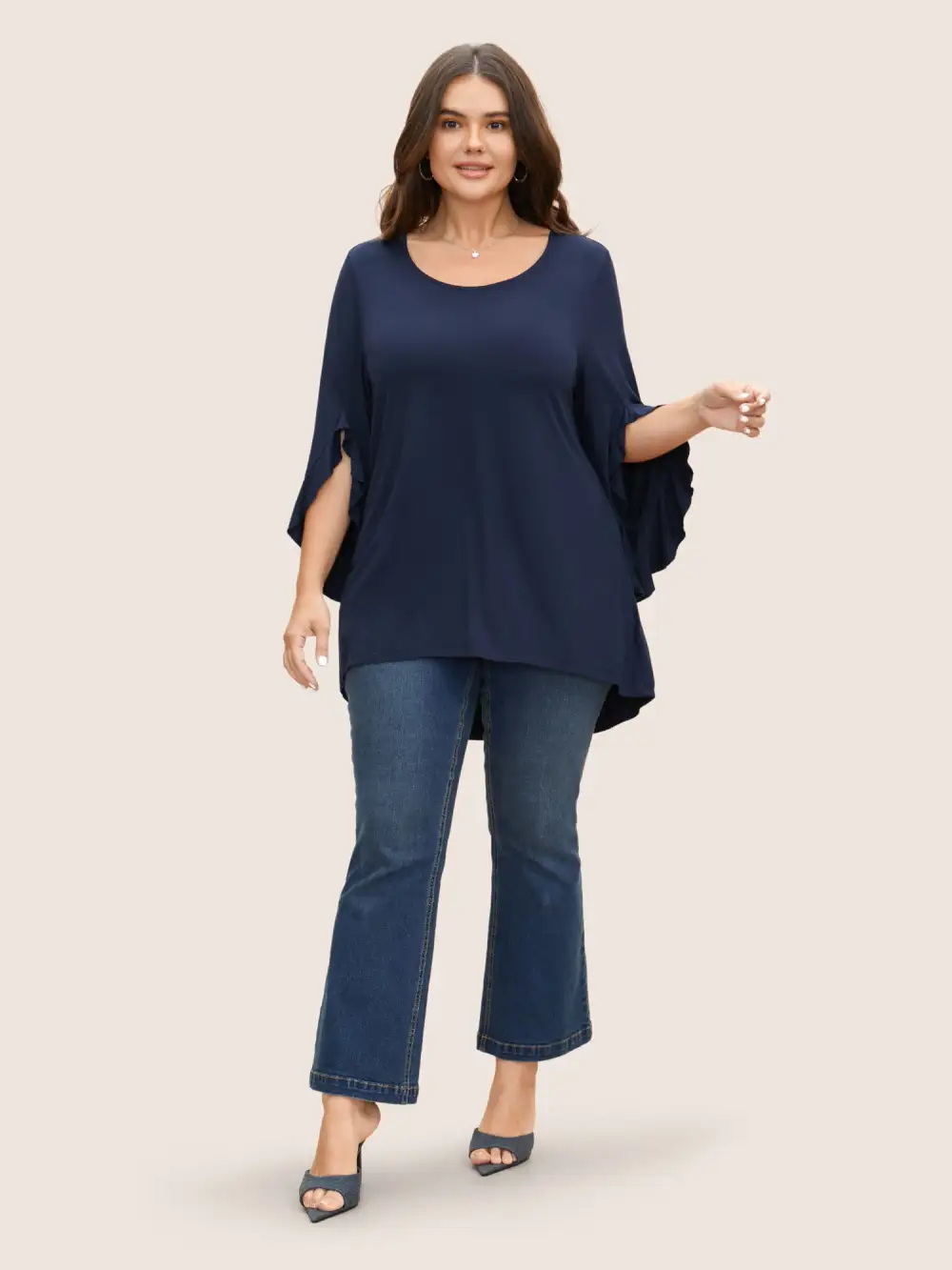 Solid Ruffle Sleeve High Low Hem T-Shirt